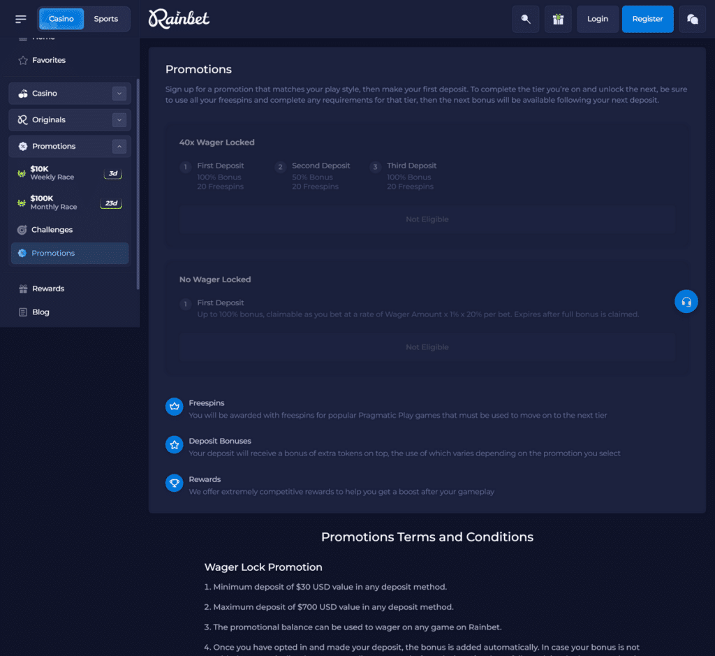 Besides a tiered loyalty program, Rainbet likewise has a couple of perks ready for their players. They are divided in wager secured and no wager-locked groups. The distinction is, as you may have thought, in the quantity you can wager for the duration of the reward!Read more rainbet casino At website Articles